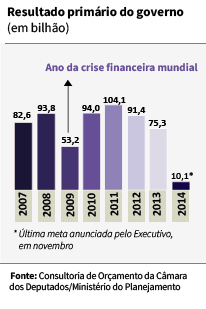 O governo federal deverá encerrar 2014 com o menor resultado fiscal dos últimos anos, R$ 10,1 bilhões.