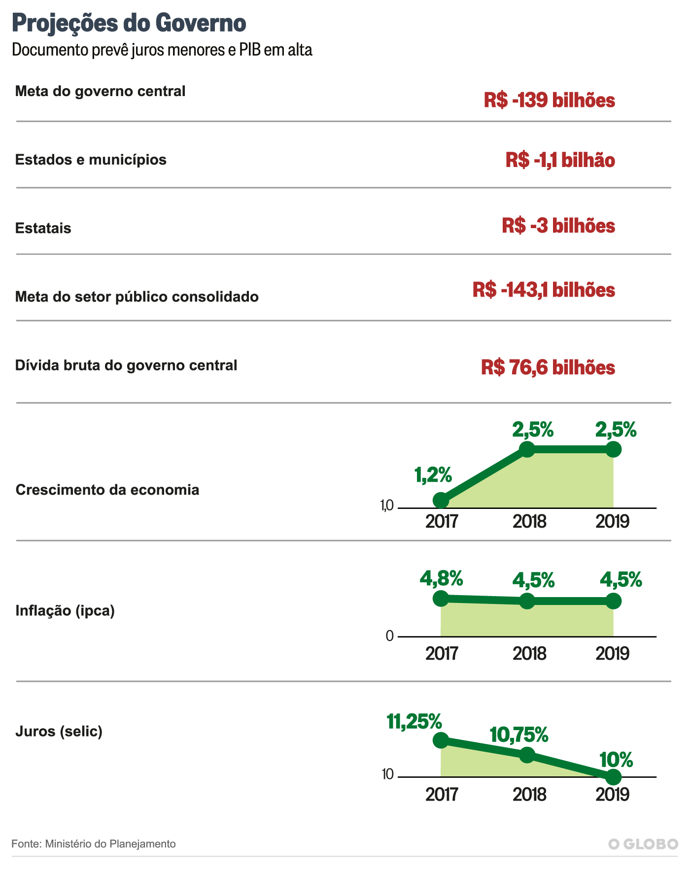 No ofício encaminhado à CMO, o ministro interino do Planejamento, Dyogo de Oliveira, propõe a nova meta fiscal e sugere incluir o artigo que trata da limitação das despesas primárias. O texto da PEC prevê que o limite dos gastos com base na inflação conste das LDOs.