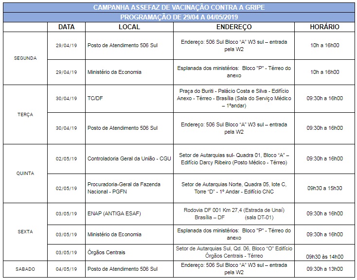 Maiores informações: www.assefaz.org.br ou pelo telefone 2108-0477 ou 3218-0142.