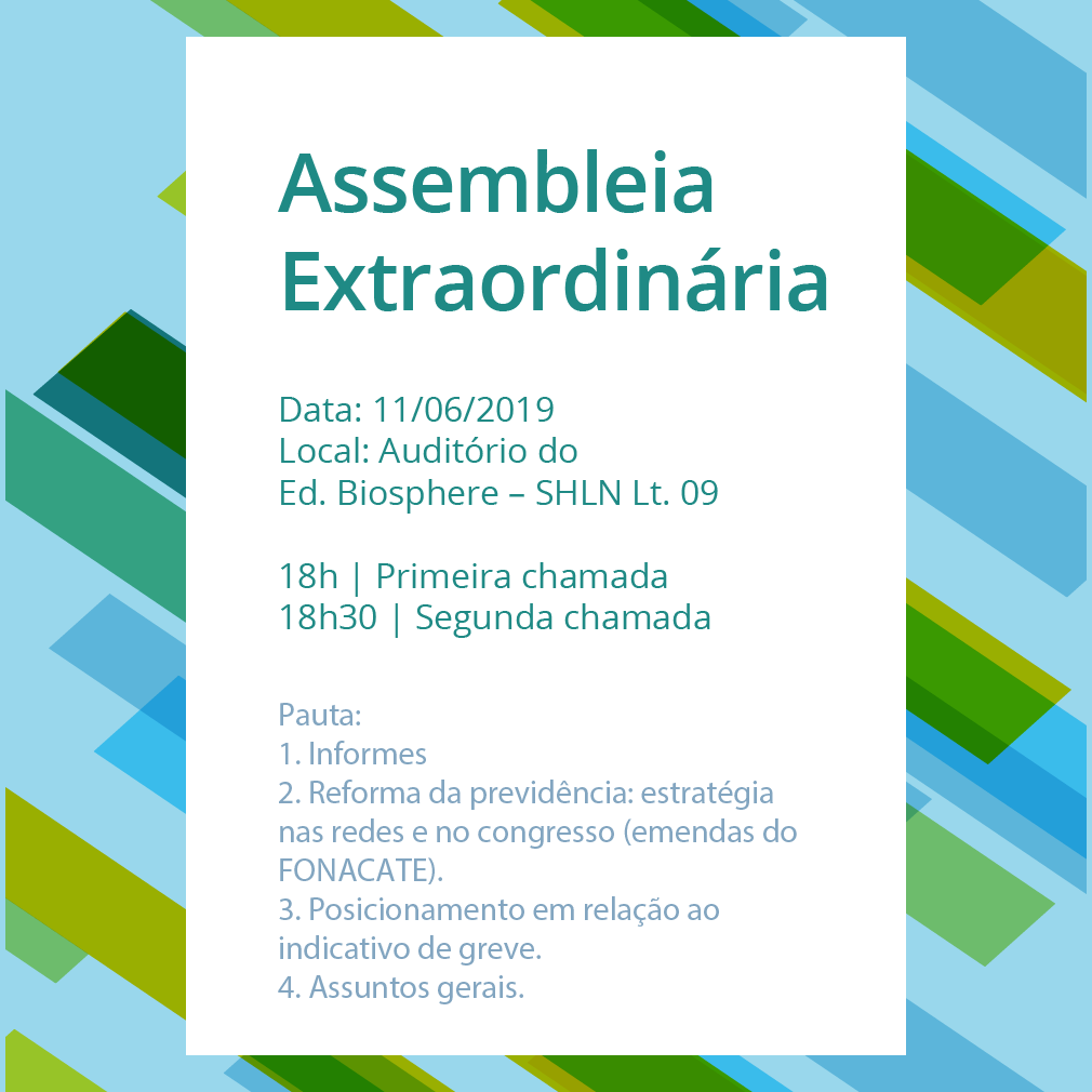 Assecor convoca Assembleia Extraordinária para a próxima terça (11). Confira as emendas do Fonacate à Proposta de Emenda à Constituição (PEC) 06/2019, que trata da reforma da Previdência: https://bit.ly/2HOBu1Z