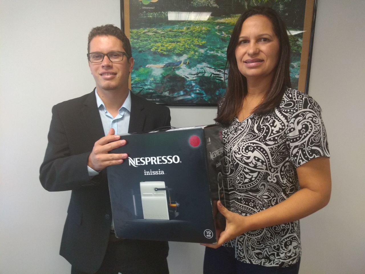 Além de desfrutar de todos os benefícios oferecidos pela Assecor tem + Vantagens, os associados que ativam o cadastro ainda tem a chance de concorrer a prêmios. Hoje, a Assecor fez a entrega de uma cafeteira Nespresso Inissia para a associada Luciana Rodrigues Ribeiro, ganhadora do último sorteio realizado pelo clube de Vantagens. O sorteio foi realizado na última terça-feira, 24/09, e participaram do sorteio todos os associados que ativaram os seus cadastros até o dia 22/09.