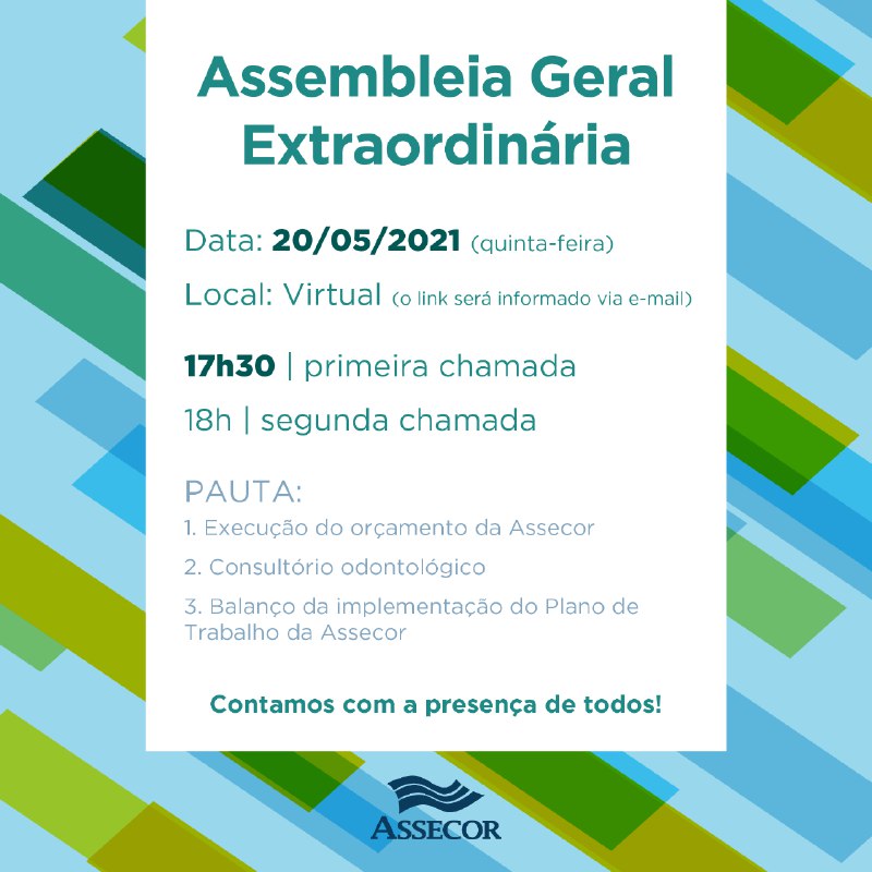 Nos termos dos Estatutos da Assecor e Assecor Sindical, ficam os associados convocados para a seguinte Assembleia Geral Extraordinária: