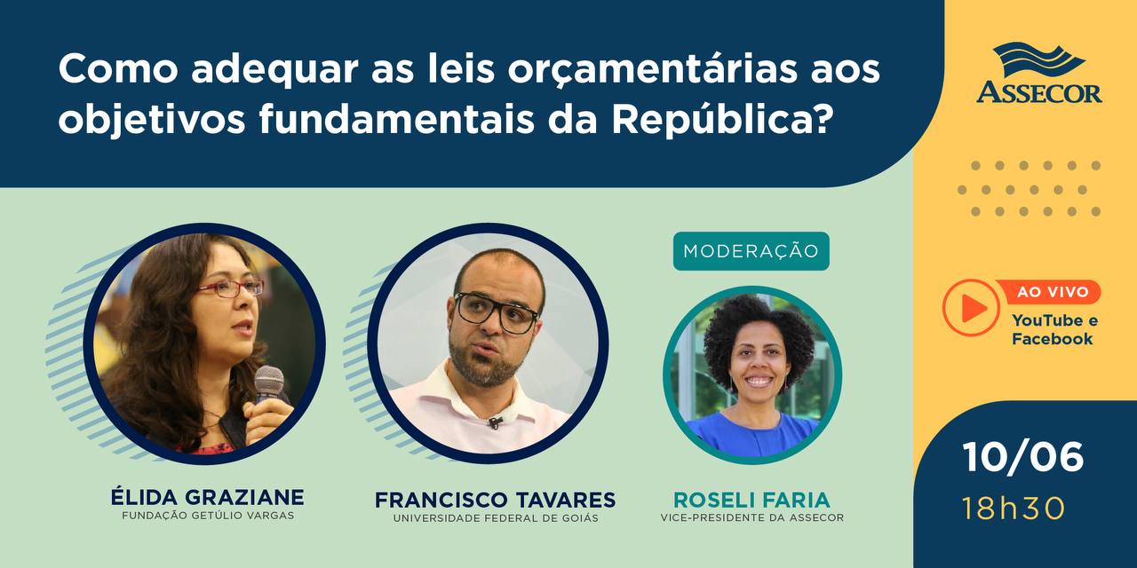 A Assecor promove no dia 10/06 (quinta-feira) às 18h30, a continuação do debate “Como adequar as leis orçamentárias aos objetivos fundamentais da República?”, com as participações de Élida Graziane, Procuradora do Ministério Público de Contas do Estado de São Paulo, de Francisco Tavares, Professor da Universidade Federal de Goiás e de Roseli Faria, vice-presidente da Assecor como mediadora.