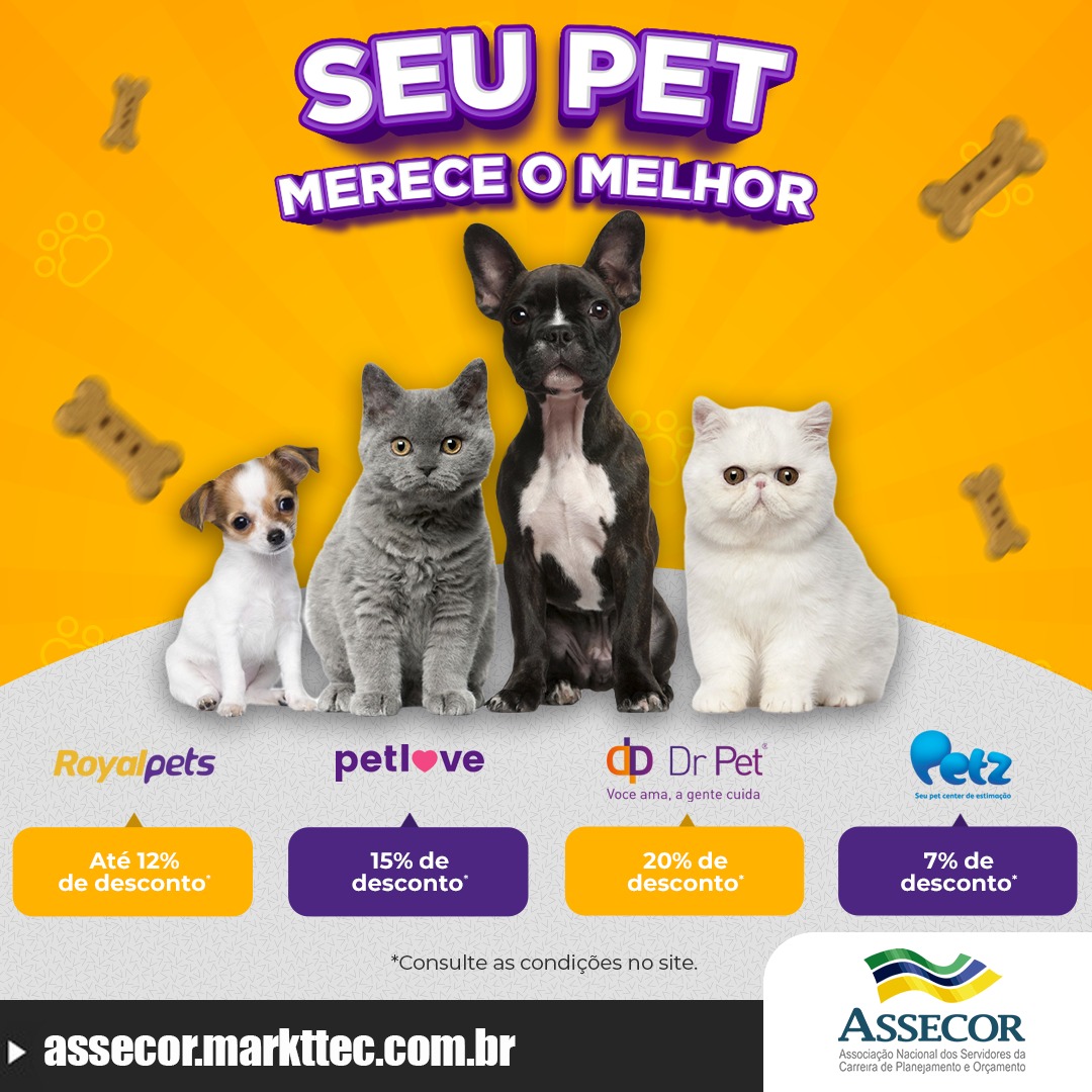 No Dr. Pet, por exemplo, o desconto é de 20%, enquanto na PETLove a economia pode chegar a 15%. E as ofertas não param por aí! Na Royal Pets é disponibilizado 10% em todo site para todas as compras e 12% em todo site para compras acima de R$ 299. Enquanto a oferta no Petz pode chegar a 7%. Aproveite os benefícios que só o Clube de vantagens da Assecor tem!