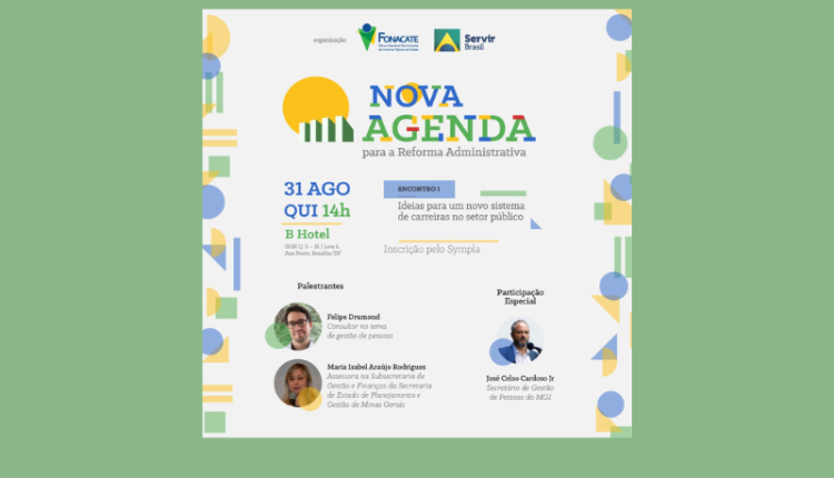 O Fórum das Carreiras de Estado (Fonacate) e a Frente Servir Brasil realizam na próxima quinta-feira, 31 de agosto, o primeiro seminário para debater a “Nova Agenda para a Reforma Administrativa”. O evento será realizado às 14h30 no B Hotel, em Brasília — veja ao final do texto o endereço completo. As inscrições podem ser feitas no site da Sympla, por meio do link: tinyurl.com/3we6rzpu. Os participantes que forem acompanhar o evento de maneira remota não precisam realizar inscrição.