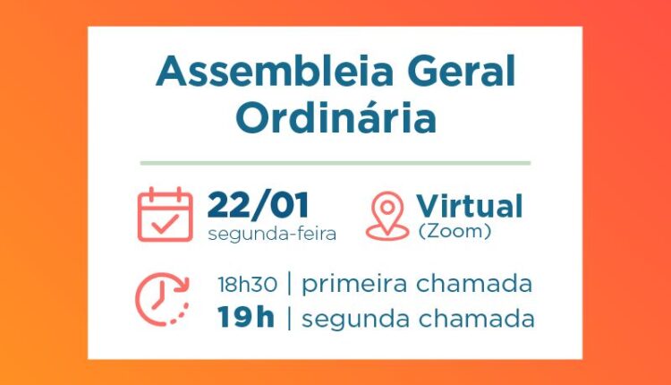 A assembleia será realizada no formato online, com primeira convocação às 18h30 e segunda convocação às 19h.