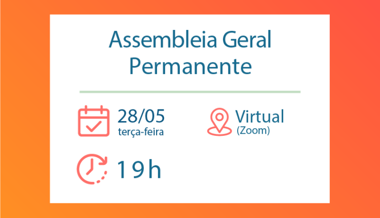 Participe da reunião da assembleia geral permanente que realizaremos no dia 28/05 às 19h.