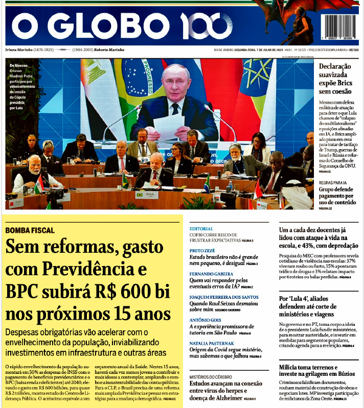 Nesta segunda-feira, 07 de julho de 2025, O Globo estampou em sua manchete: “Gasto com previdência e BPC deve aumentar R$ 600 bi em 15 anos”. O dado faz parte de um estudo conduzido pelo economista Daniel Duque, do Centro de Liderança Pública (CLP). Mais uma vez, o debate fiscal é pautado unicamente pela ótica da despesa, sem qualquer menção ao modelo de desenvolvimento que levou o Brasil a essa estrutura social desigual e à informalidade crônica do mercado de trabalho.