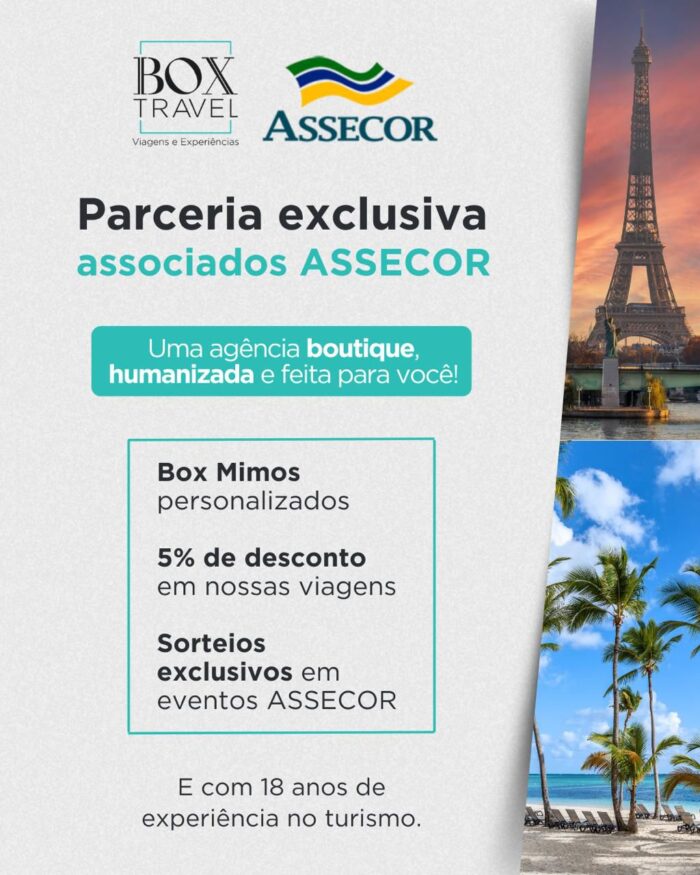 A Box Travel, agência boutique com 18 anos de experiência no turismo, firmou parceria com a ASSECOR para oferecer benefícios reais a você: